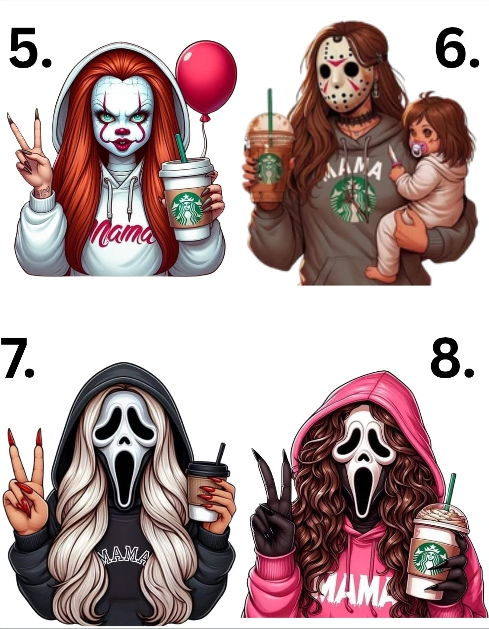 This ain't your average mom life crewneck. Featuring a glam “Horror Mama” flashing the peace sign with a cold drink in hand, this sweatshirt brings sass and slay together — literally. Whether you're running errands or chasing toddlers, do it in spooky style.