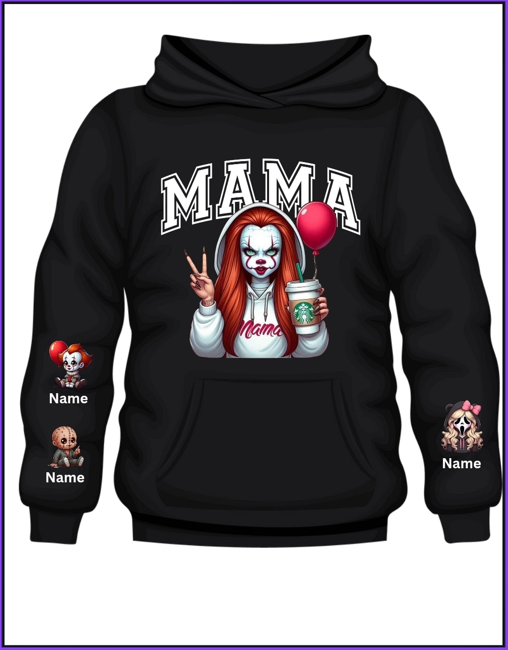 Personalize your sweatshirt by selecting the mini horror(s) to match your little monsters! Add their names below each character for an extra custom touch. Makes a killer gift for Halloween, spooky season birthdays, or just because you're that mama.