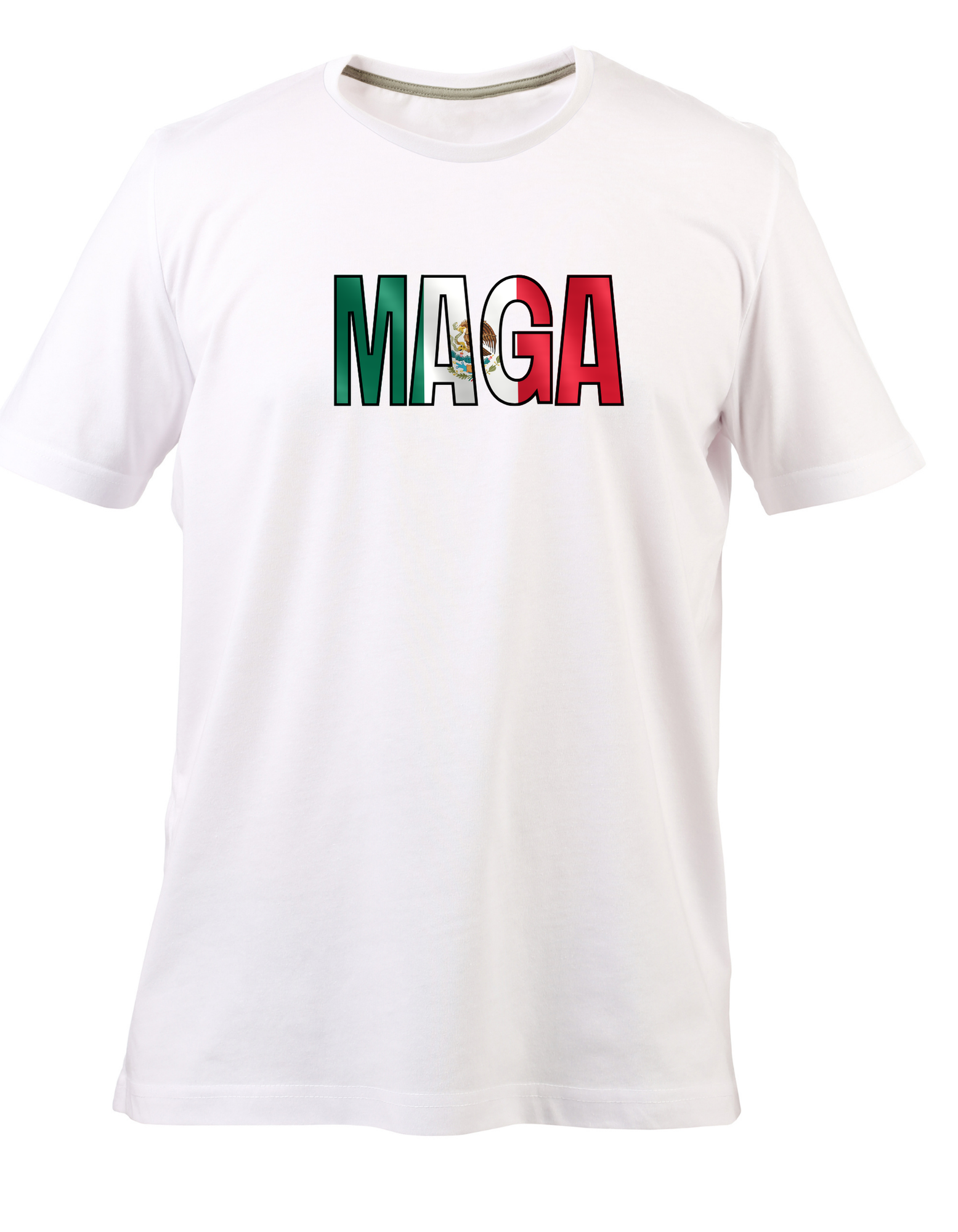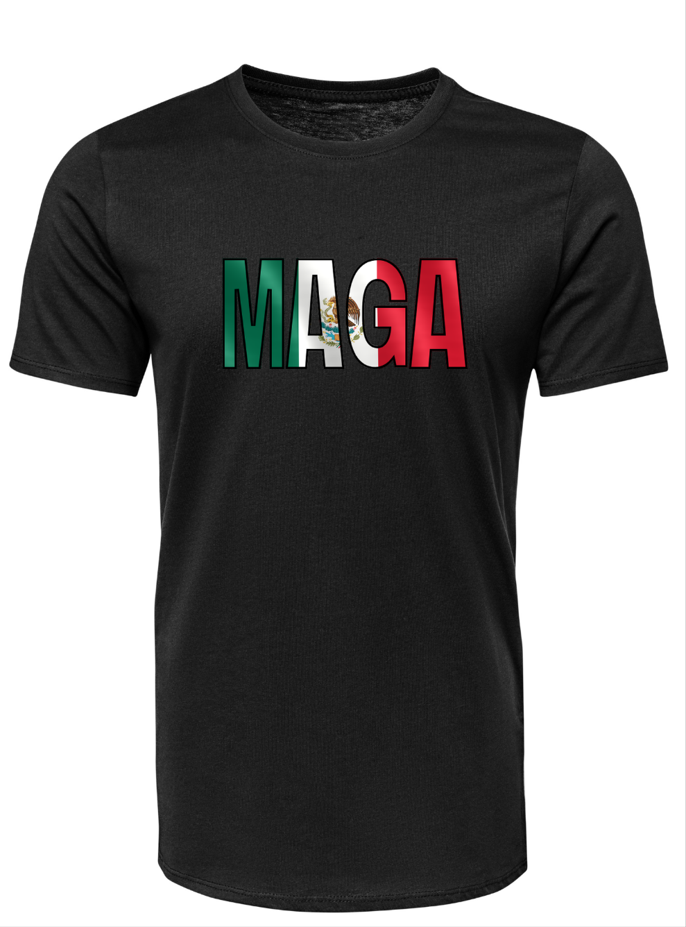 Make a bold statement with this unapologetically proud "MAGA – Mexicans Ain’t Going Anywhere" T-shirt. This clever twist reclaims the MAGA acronym, standing for "Mexicans Ain’t Going Anywhere," and features vibrant letters filled with the Mexican flag—making it a conversation starter and cultural flex in one.